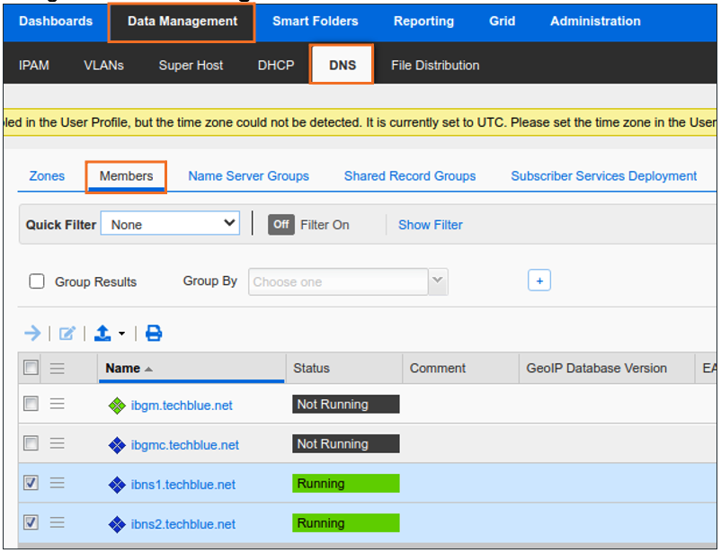 Navigate to Data Management → DNS → Members