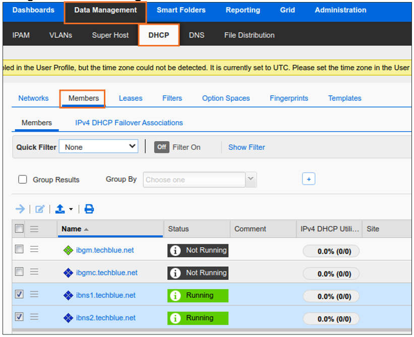 Navigate to Data Management → DHCP → Members