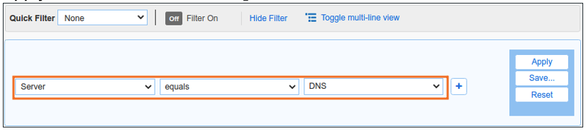 Apply filter criteria Server equals DNS