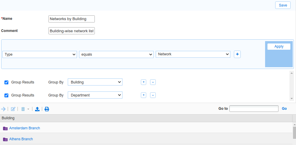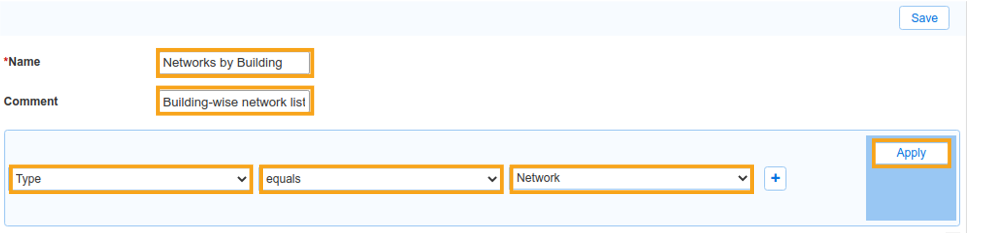 For Comment, enter Building-wise network listClick the Choose Filter dropdown and select Type