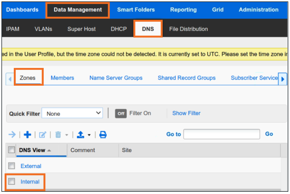 Navigate to Data Management → DNS → Zones