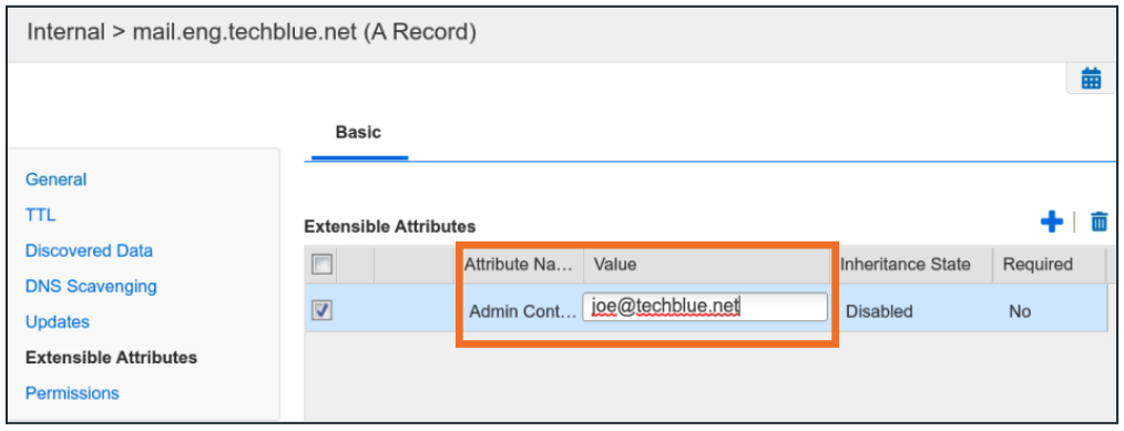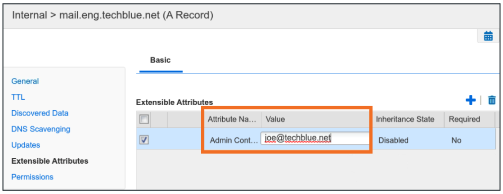 Click Add to add the Attribute name as Admin Contact and Value as joe@techblue.net