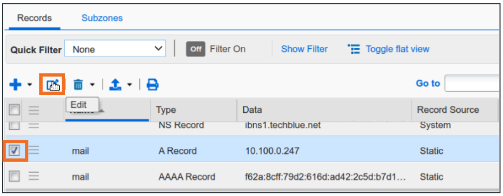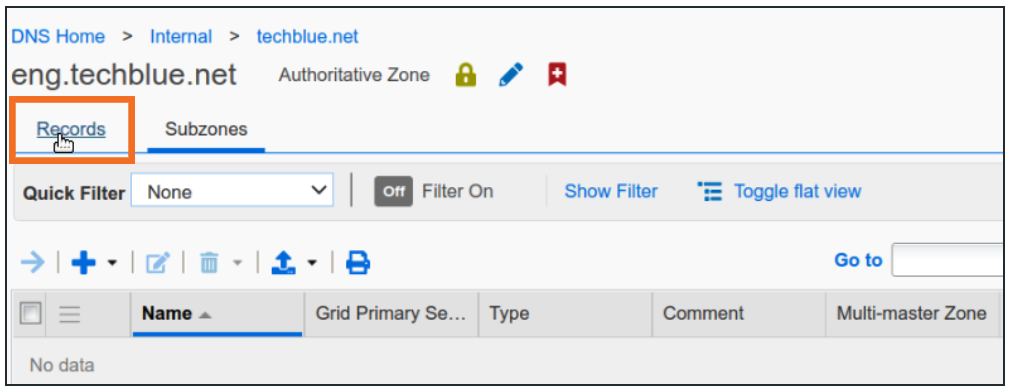 Once inside, click Records to see all records within the zone