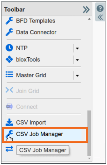 From the Toolbar click on CSV Job Manager