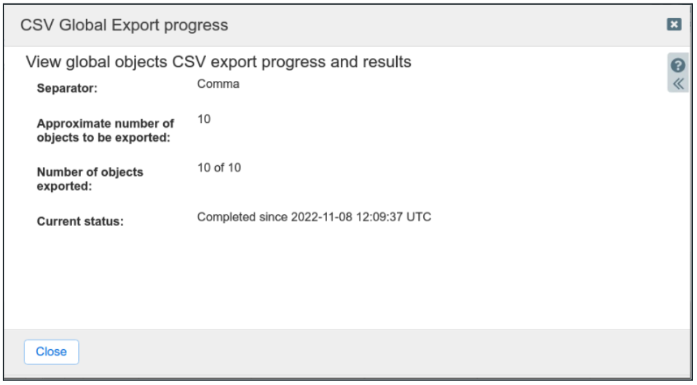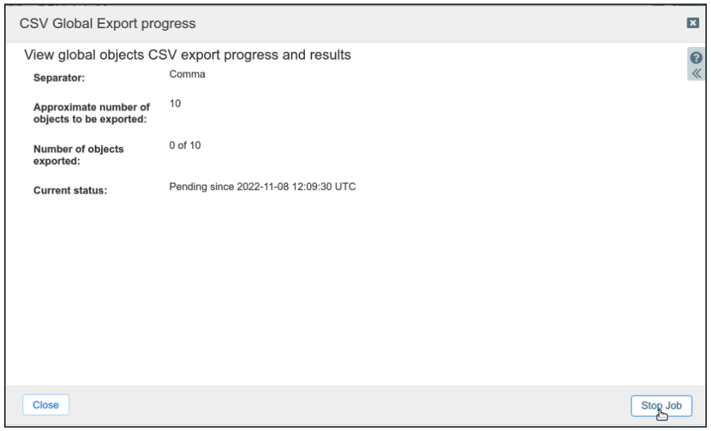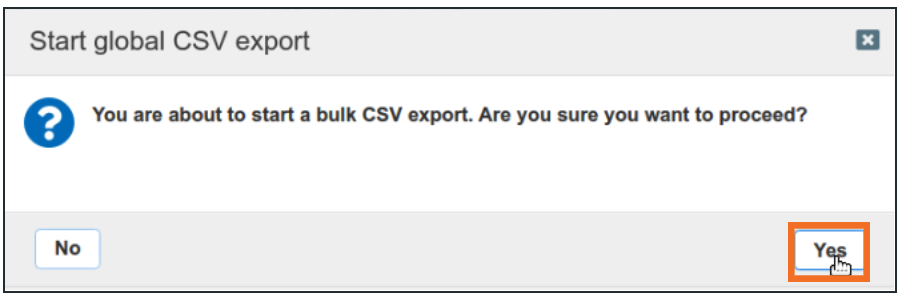 CSV Global Export progress will show the export status
