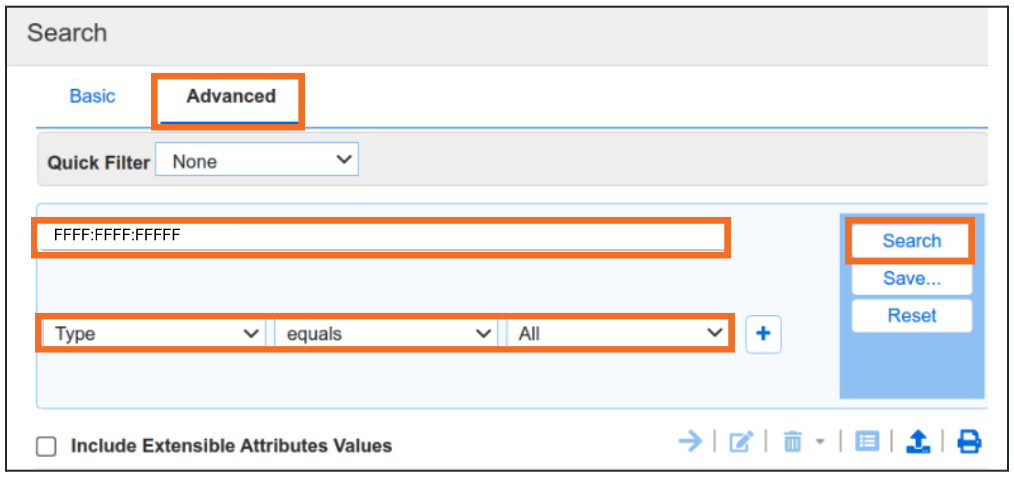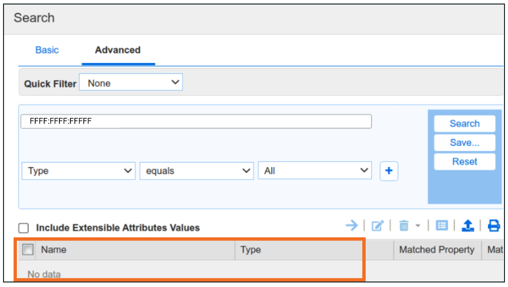 Provide the MAC address from Table 1520-1 as a search string then click Search for Type equals All