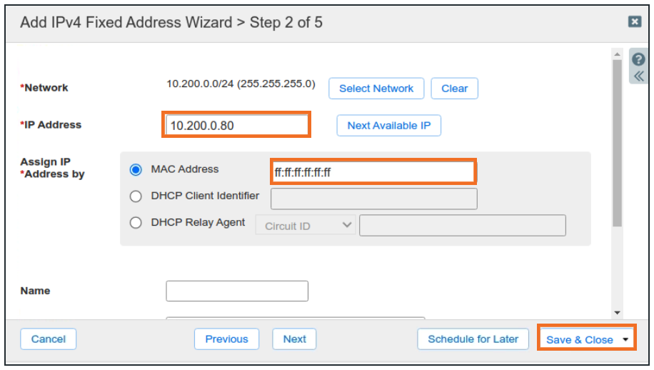 Alternatively, we can create 3 individual objects: A record, PTR record and a Fixed address object for the same results.