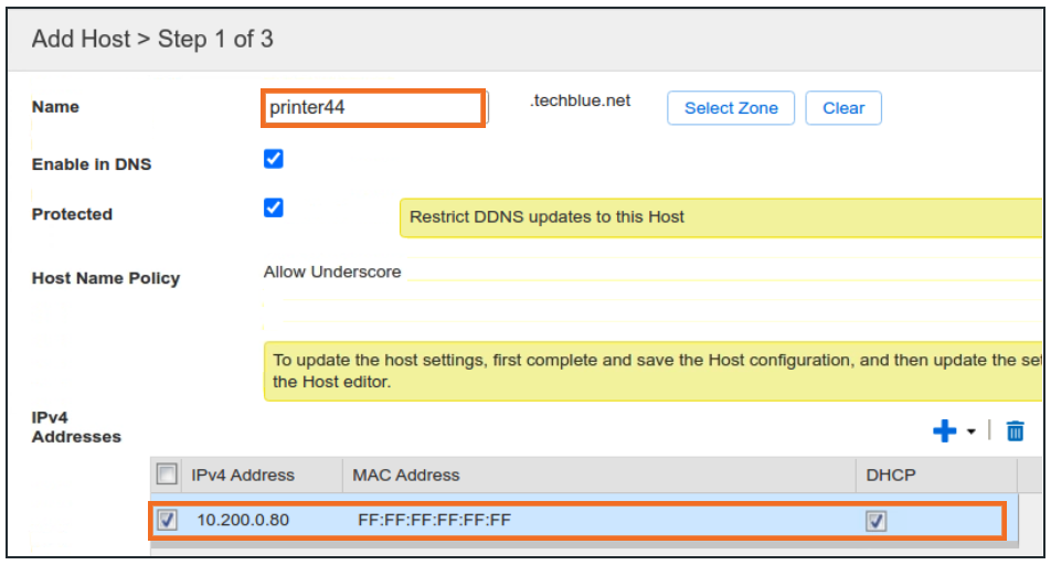 Task 2: Create a Host with the supplied information and enable DHCP for the entry