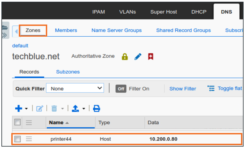 Here, you will find the Host Record for printer44 reflected in the reverse-mapping zone.