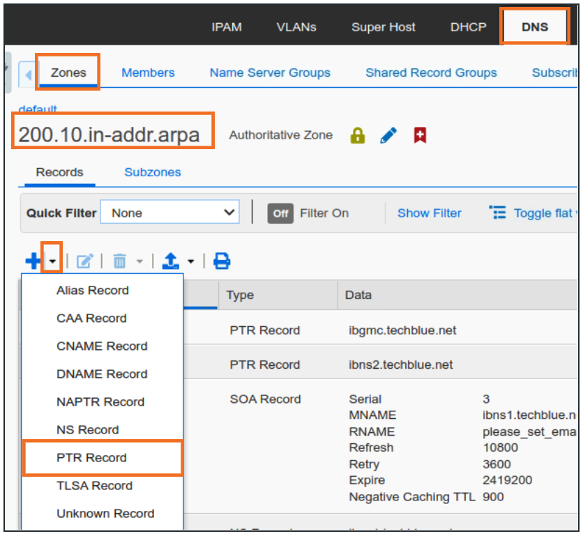 Open the 200.10.in-addr.arpa authoritative reverse mapping zone