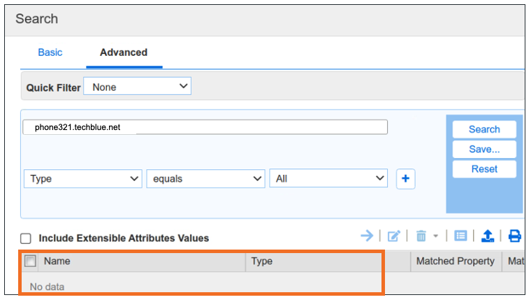 Here we see no information (no data) which means that the FQDN is not present in NIOS database.