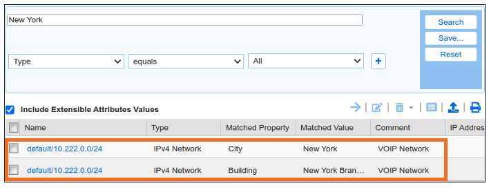 Make sure to check the box to also Include Extensible Attribute Values. This will allow the search to include objects with Extensible Attributes set to New York.