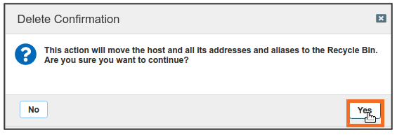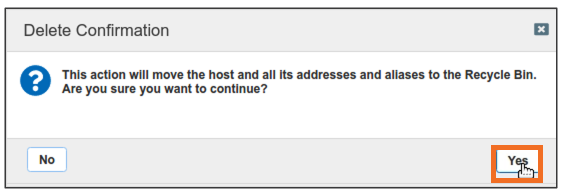 Navigate through the user interface to verify the Host record is moved to the recycle bin.