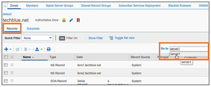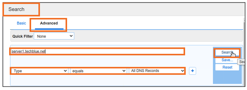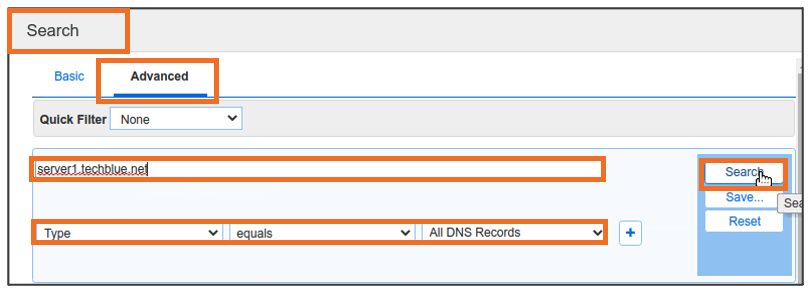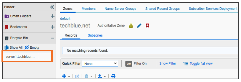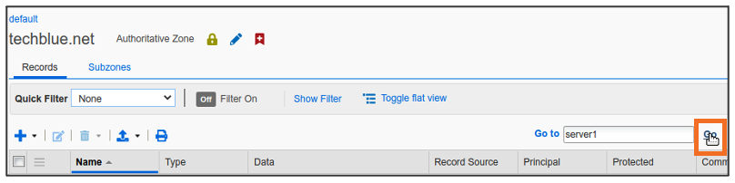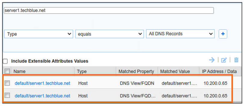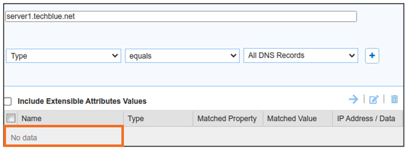 server1.techblue.netas the search string then click Search for Type equals All DNS Records