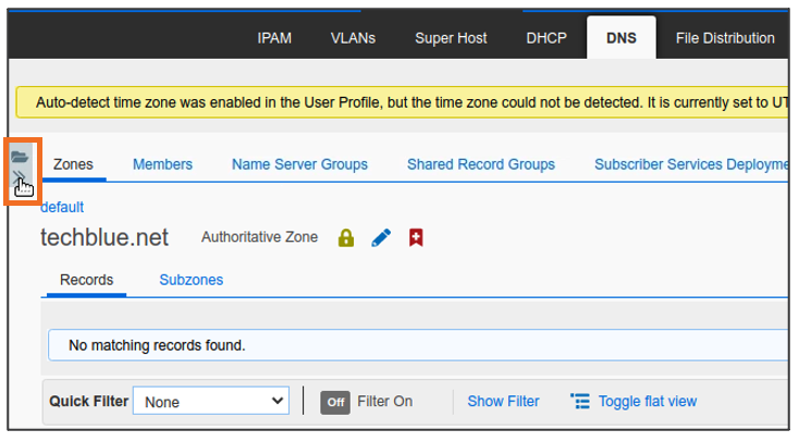 Click on the zone name techblue.net to enter the zone