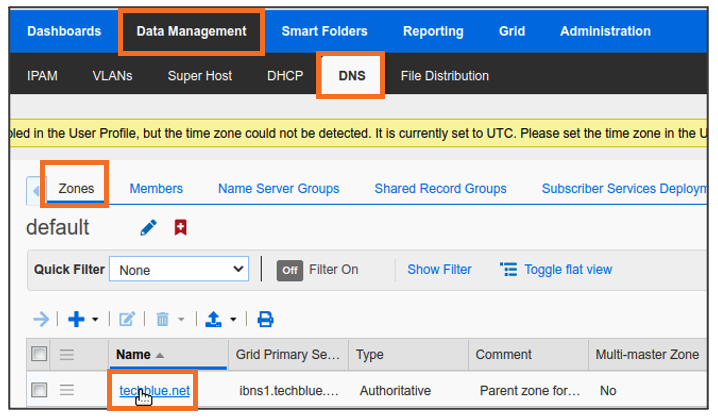 Navigate to Data Management → DNS → Zones