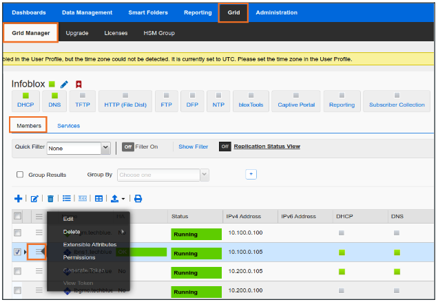 Navigate to Grid → Grid Manager → Members