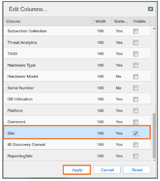 Scroll down to find the Site Column and check the box to make it Visible