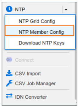 From the Toolbar, click the NTP dropdown and choose NTP Member Config.