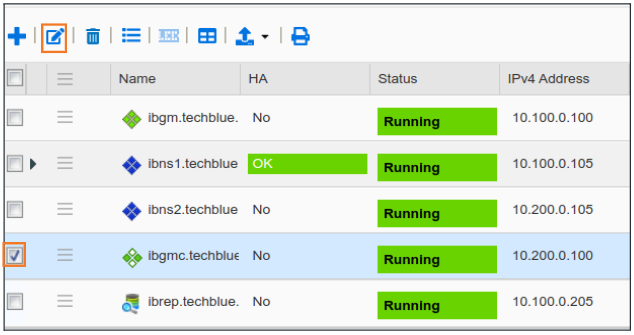 Choose a member (example shows ibns1.techblue.net) by checking the box to the left of the member name.
