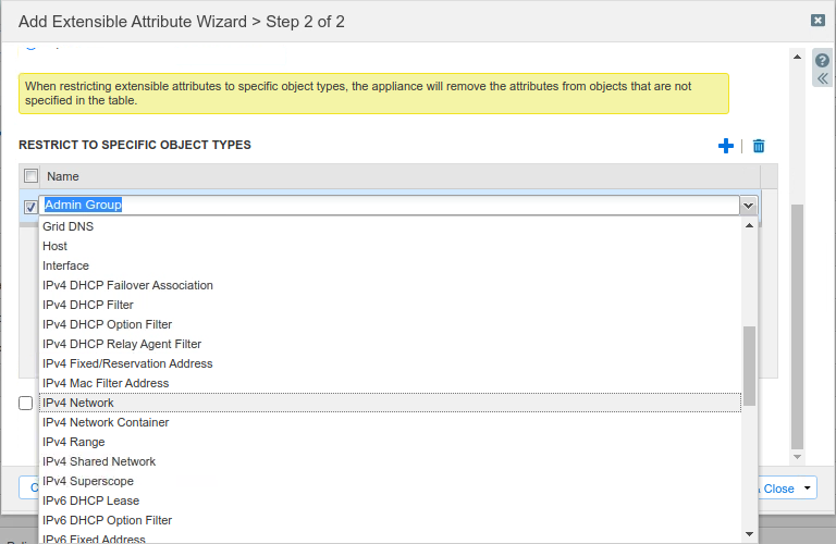 Click Next to proceed to Step 2 of the Add Extensible Attribute Wizard.