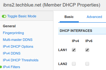 Start the DHCPv6 address on the member ibns2.techblue.net.