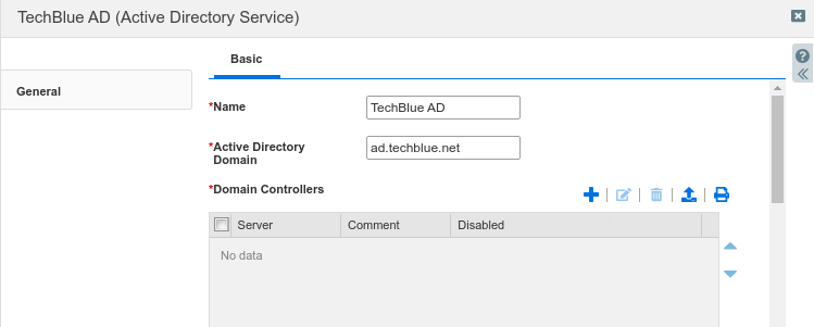 In the Active Directory drop-down menu, select TechBlue AD, the entry you created in the previous task.