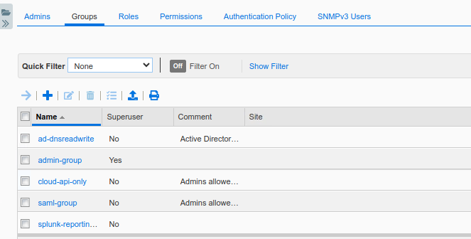 Permissions to be set for each group in NIOS