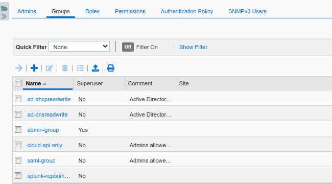 Create local groups in NIOS with matching names as the ones already configured in AD. Assign roles to the local groups as shown in Table 2551-2.