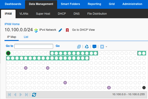 Go to the network 10.100.0.0/24, and select the IP Map view. You should see something similar to the screenshot below.