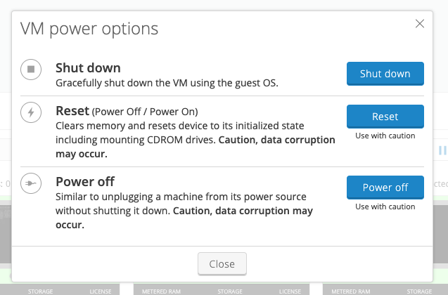 Locate the tile for the NIOS-X server that provided the DHCP lease (from step 1). Click the Power Options for this VM button and select Power Off.