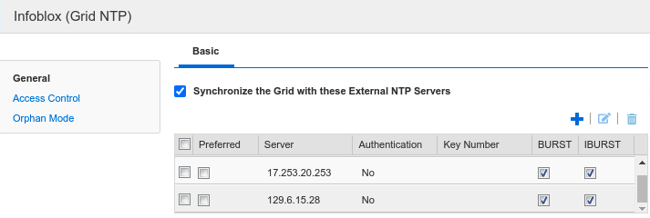 In the Infoblox (Grid NTP) window, place a check mark in the box for Synchronize the Grid with these External NTP Servers.