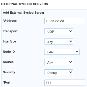 Click Add to add this External syslog server.