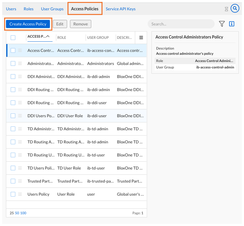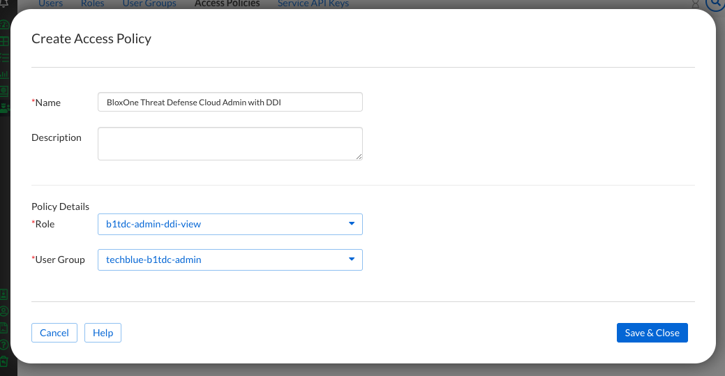 Name the Access Policy BloxOne Threat Defense Cloud Admin with DDI