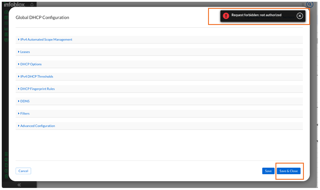 This confirms that this user can view DNS and DHCP Configurations but cannot make changes