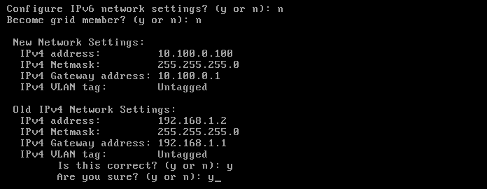 After you have confirmed the network settings change, the NIOS appliance will reboot.