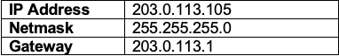 Gateway | 203.0.113.1 |