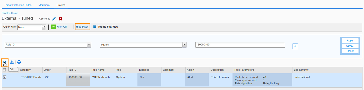 In this task, you modify the External - Tuned profile to use the new updated ruleset, then we will disable (DNS Malware, DNS DDoS, and DNS Tunneling) Categories, and finally verify that our custom rules have been merged correctly.