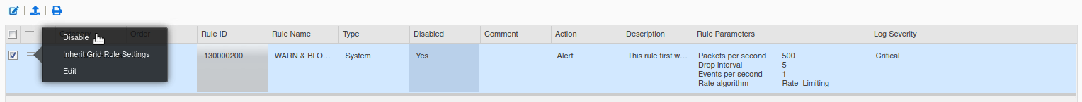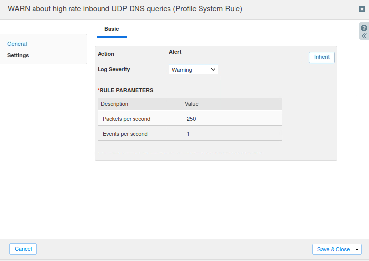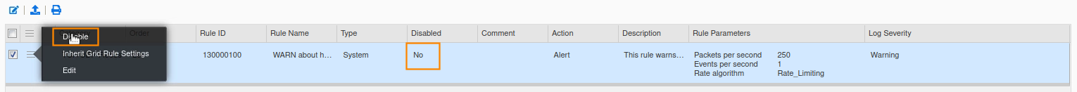 Repeat the steps to confirm that DNS DDoS and DNS Tunneling rules are also disabled.