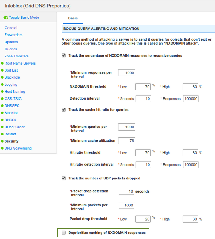 Select the appropriate settings to protect against NXDOMAIN attacks.